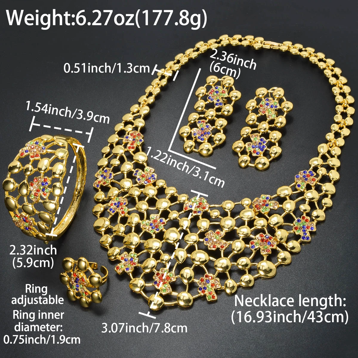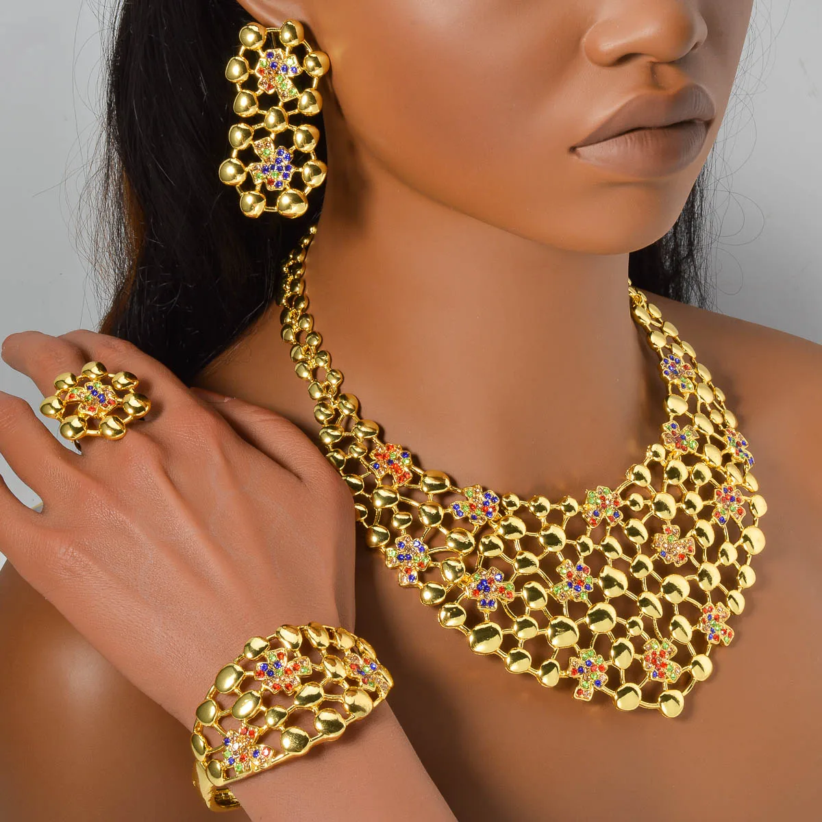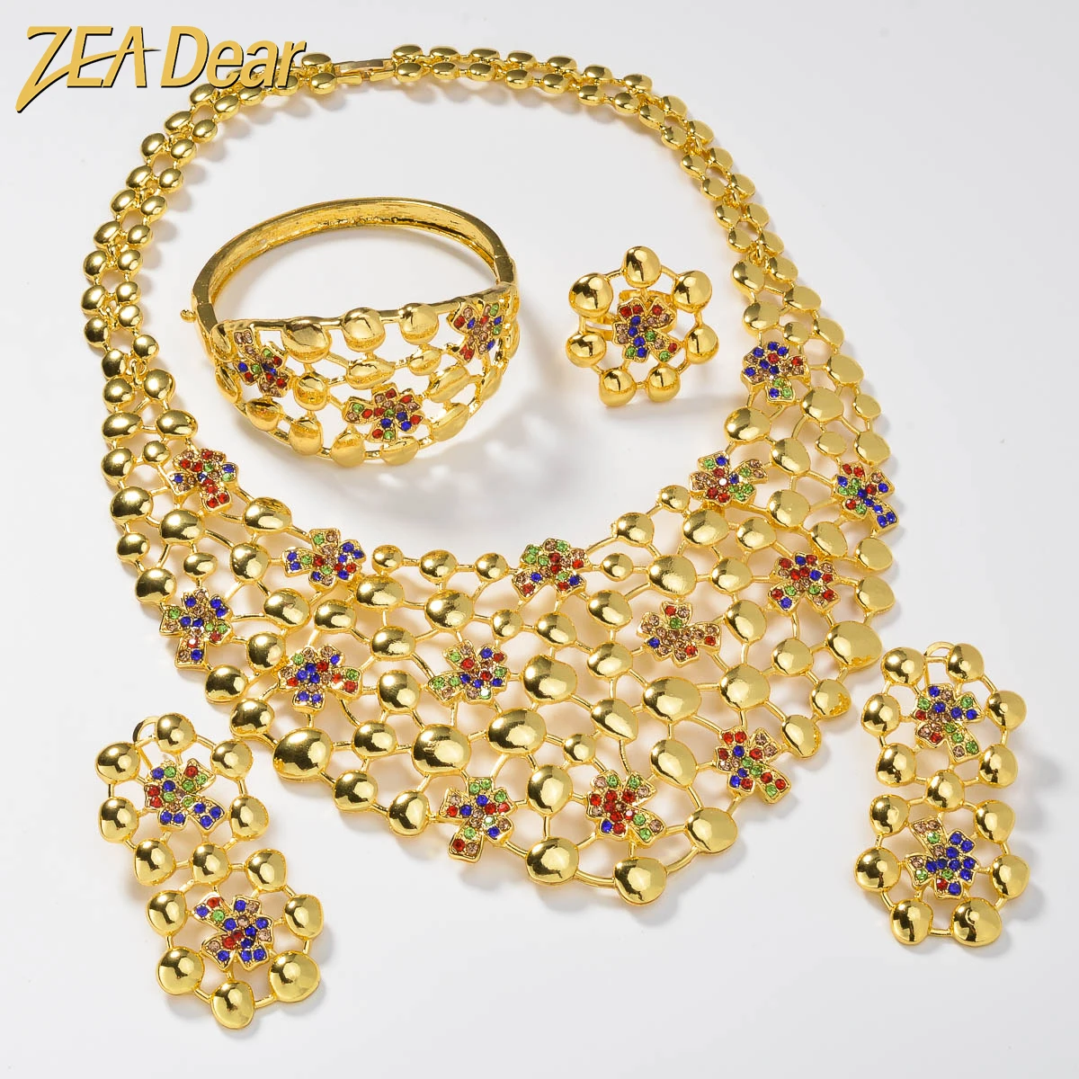 ZEADear Bohemia Jewelry Sets Colorful Zircon Earrings Showy Necklace Web Gold Color Bracelet Bridal Ring Wedding Party Women