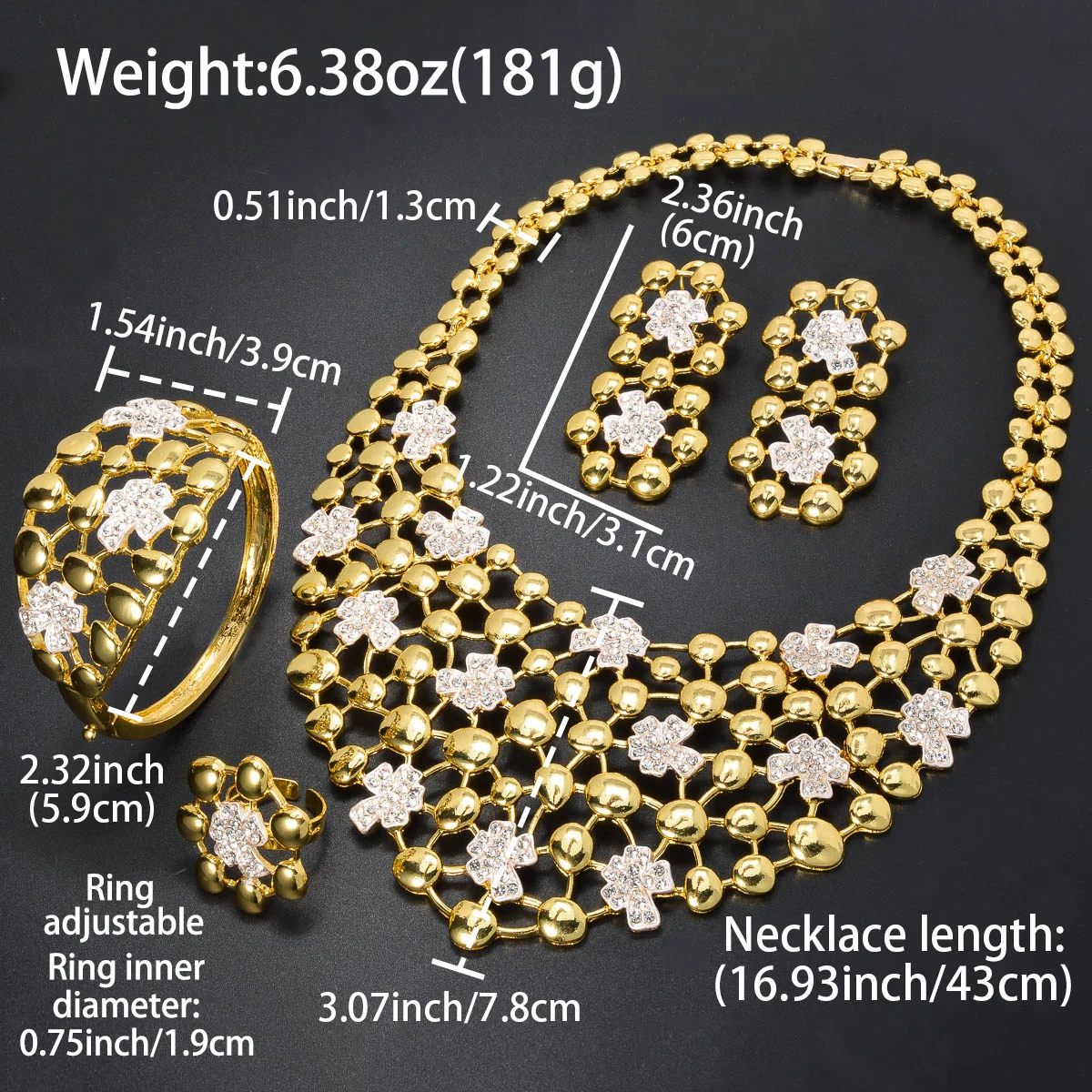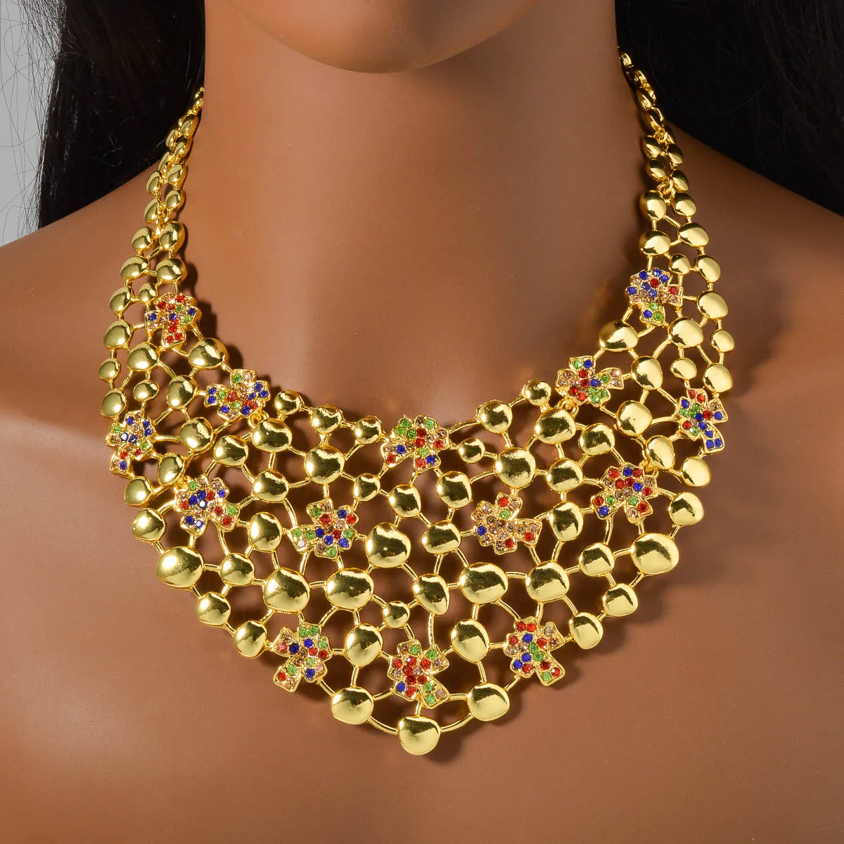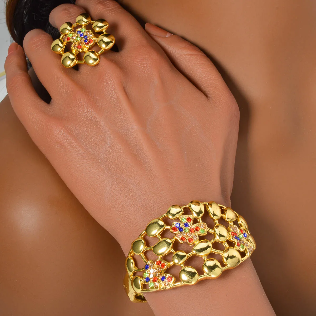 ZEADear Bohemia Jewelry Sets Colorful Zircon Earrings Showy Necklace Web Gold Color Bracelet Bridal Ring Wedding Party Women